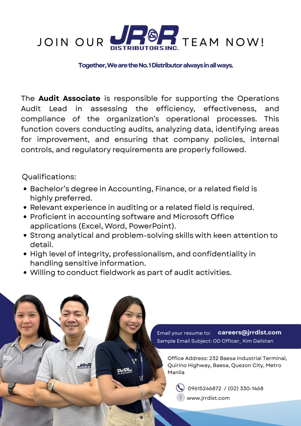• With at least 1 year of experience in A/R.
